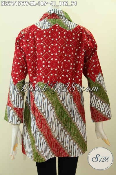 Baju Batik Wanita Dewasa, Blus Model Kerah Motif Kombinasi, Busana Batik Cap Tulis Buatan Solo, Istimewa Untuk Kerja Dan Acara Resmi [BLS7615CT-XL]