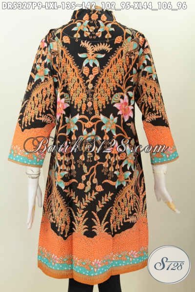 Baju Batik Wanita Dewasa, Busana Batik Dress Kerah Langsung Motif Mewah Dengan Nuansa Klasik Nan Elegan Proses Printing, Baju Batik Kerah Langsung Untuk Kerja Dan Acara Formal [DR5327P-L]