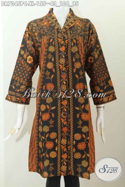 Baju Batik Wanita Dewasa, Busana Batik Solo Halus Model Kerah Langsung Proses Printing Hanya 100 Ribuan [DR7345PC-XL]