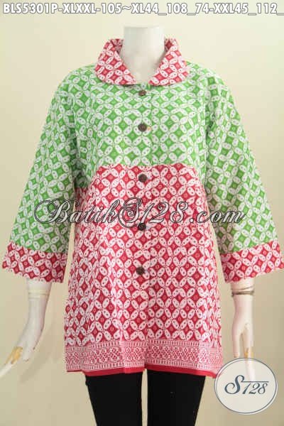 Baju Batik Wanita Dewasa Dengan Kombinasi Warna Cerah Berbahan Halus Model Kerah Bulat Motif Kawung Klasik Proses Printing, Tampil Lebih Kekinian [BLS5301P-XL , XXL]