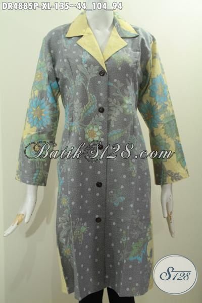 Baju Batik Wanita Dewasa Model Kerah Safari, Busana Batik Elegan Dan Modis Motif Bunga Proses Printing Berpadu Warna Pagi Sore Yang Bikin Wanita Terlihat Mempesona [DR4885P-XL]