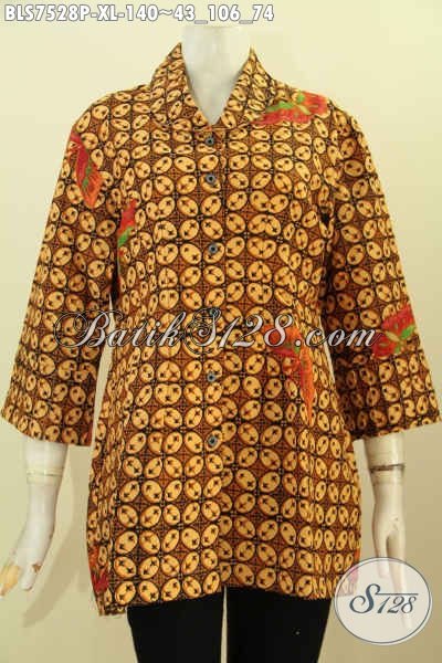 Baju Batik Wanita Dewasa Motif Kawung Klasik, Blus Ofi Bahan Batik Printing Solo Dengan Ofneisel Kerah Dan Lengan, Tampil Anggun Dan Menawan [BLS7528P-XL]