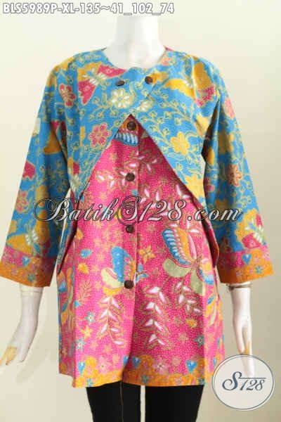 Baju Batik Wanita Dewasa, Pakaian Batik Halus Motif Keren Dual Warna Model Lengan Panjang Kombinasi Rompi, Pas Banget Buat Ke Kantor [BLS5989P-XL]