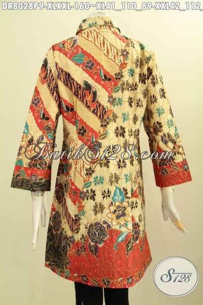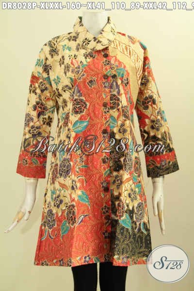 Baju Batik Wanita Dress Model Krah Miring, Busana Batik Elegan Buatan Solo Proses Printing Motif Bagus Hanya 160 Ribu, Tampil Lebih Gaya [DR8028P-XL]