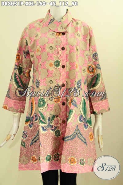 Baju Batik Wanita Etnik, Busana Batik Dress Krah Miring Halus Proses Printing Kwaitas Bagus Buatan Solo Asli, Cocok Untuk Baju Kerja Dan Acara Resmi Perempuan Gemuk [DR8031P-XXL]