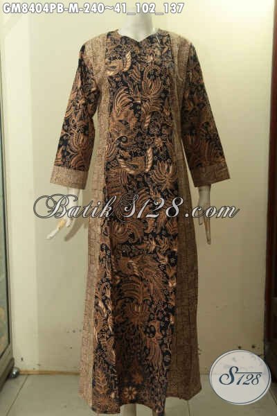 Baju Batik Wanita Gamis Tren Desain 2018, Hadir Dengan Resleting Depan Berpadu Dual Warna Trendy Motif Berkelas Proses Printing Cabut, Cocok Untuk Kerja Dan Acara Formal [GM8404PB-M]