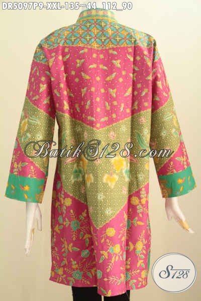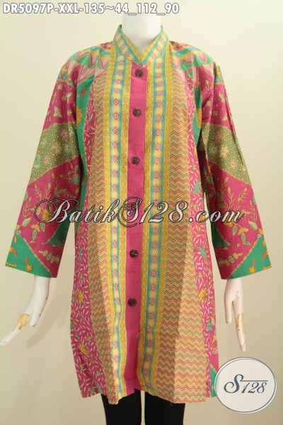 Baju Batik Wanita Gemuk, Busana Batik Modis Halus Motif Klasik, Pakaian Batik Istimewa Buatan Solo Model Kerah Shanghai Bahan Adem Harga 130 Ribuan [DR5097P-XXL]