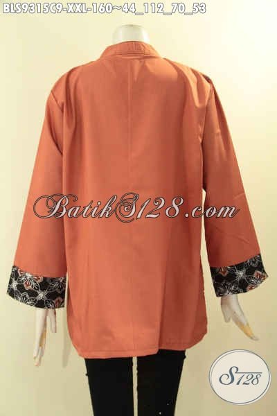 Baju Batik Wanita Gemuk Nan Istimewa, Hadir Dengan Model Cardigan Rompi Kombinasi Kain Toyobo Lengan 7/8, Pas Banget Untuk Kerja Dan Acara Resmi [BLS9315C-XXL]