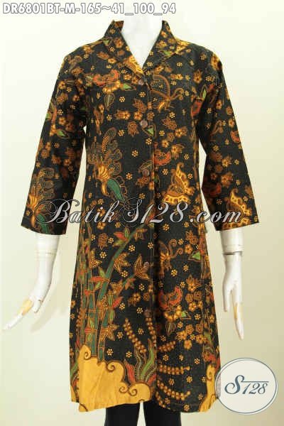 Baju Batik Wanita Kantoran, Busana Dress BatikKerah Langsung Bahan Adem Nyaman Di Pakai Motif Proses Kombinasi Tulis [DR6801BT-M]