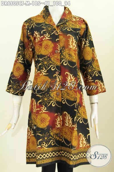 Baju Batik Wanita Keren, Dress Batik Kerah Langsung Motif Mewah Proses Cap Tulis Untuk Kerja Dan Jalan-Jalan Harga 185K [DR6805CT-M]