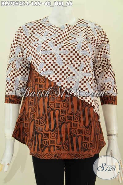 Baju Batik Wanita Kombinasi 2 Motif Dan Warna, Blus Batik Model Silang Spesial Untuk Wanita Karir Bahan Adem Nyaman Di Pakai [BLS7054C-L]