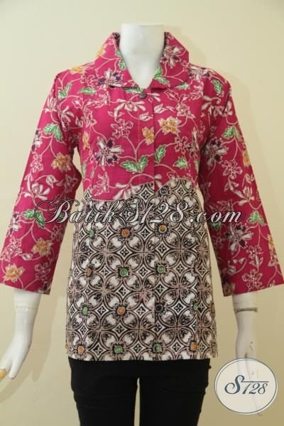 Baju Batik Wanita Kombinasi Dua Motif, Busana Batik Siang Malam Proses Cap Tulis Desain Istimewa Cewek Makin Terlihat Trendy [BLS3587CT-M]