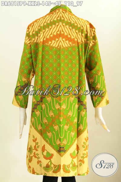 Baju Batik Wanita Modern, Dress Batik Elegan Warna Cerah Kerah Langsung Proses Printing Tampil Terlihat Mewah [DR6815P-XXL]