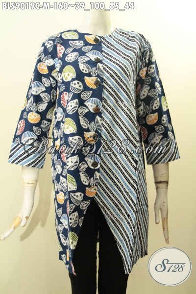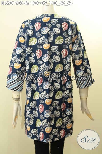 Baju Batik Wanita Modis, Blouse Batik Solo Nan Berkelas Kwalitas Istimewa Lengan Panjang 7/8, Pakaian Batik Istimewa Dengan Kancing Depan Motif Bagus Proses Cap Hanya 100 Ribuan [BLS9019C-M]