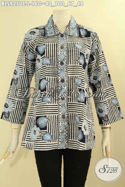 Baju Batik Wanita Motif Keren Proses Cap Model Lengan 7/8 Kerah Lancip Dan Di Lengkapi Kancing Depan, Penampilan Lebih Gaya Dan Berkelas [BLS9250C-L]