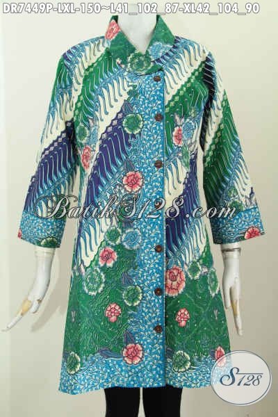 Baju Batik Wanita Muda Dan Dewasa Size XL, Dress Kerah Miring Motif Bagus Proses Printing, Tampil Makin Gaya [DR7449P-XL]