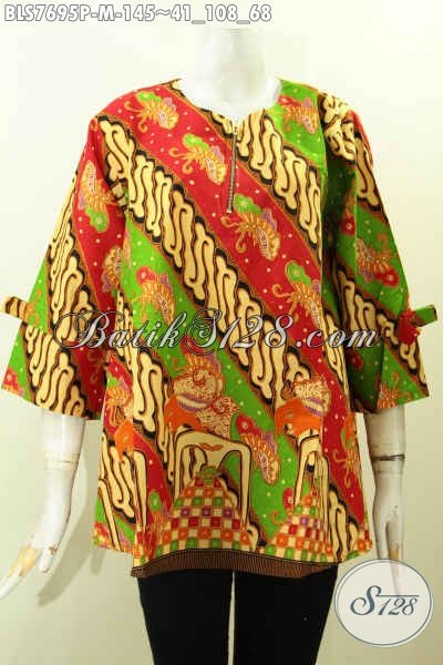 Baju Batik Wanita Muda Dengan Desain Motif Modern Klasik, Pakaian Batik Model Pita Resleting Depan Proses Printing Harga 145K [BLS7695P-M]
