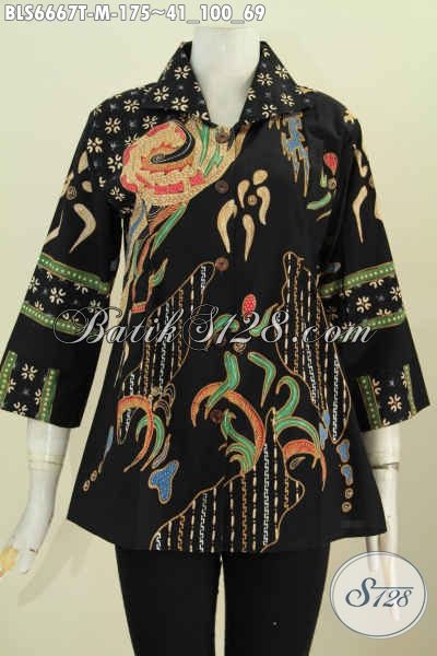 Baju Batik Wanita Muda Ukuran M, Blus Batik Solo Motif Keren Proses Tulis Desain Kerah Kotak Hanya 170K [BLS6667T-M]
