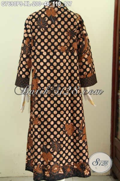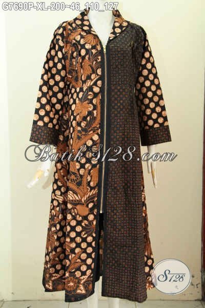 Baju Batik Wanita Muslim Modern, Gamis Long Dress Batik Istimewa Motif Klasik Printing Resleting Depan, Tampil Berkelas Dan Menawan [G7690P-XL]