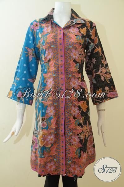 Baju Batik Wanita Paling Laris Saat Ini, Busana Batik Dress Tiga Warna Dua Motif membuat Cewek Lebih Trendy Dan Berkelas [DR2678P-M , XL]