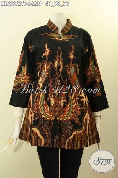 Baju Batik Wanita Solo Cocok Untuk Santai Dan Resmi, Blouse Lengan 3/4 Bahan Adem Dengan Kerah Shanghai Motif Bagus Tulis Soga Hanya 200 Ribuan [BLS8832TS-L]