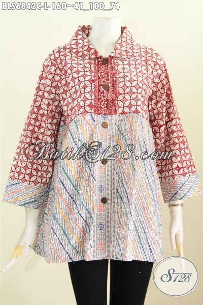 Baju Batik Wanita Tanah Abang, Blus Batik Halus 2 Warna Kerah Bulat Untuk Wanita Terlihat Keren Dan Mempesona [BLS6842C-L]
