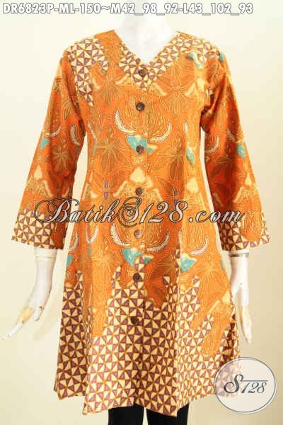Baju Batik Wanita Trend 2017, Busana Dress Batik Kerah V Yang Bikin Wanita Terlihat Cantik Mempesona Harga 150K [DR6823P-M , L]