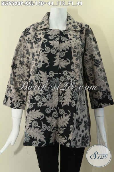Baju Batik Wanita Ukuran Jumbo, Blouse Batik 2 Motif Model Krah Lengan 7/8 Pakai Kancing Depan, Cocok Untuk Yang Berbadan Gemuk [BLS9520P-XXL]
