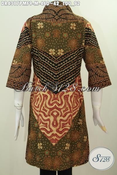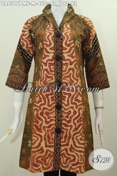 Baju Batik Wanita Ukuran M Desain Mewah Motif Klasik, Pakaian Dress Batik Kombinasi Tulis Buatan Solo Tampil Elegan Dan Bersahaja [DR4317PMF-M]