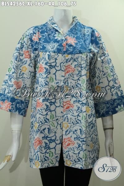 Baju Batik Wanita Ukuran XL Di Jual Online, Pakaian Batik Modis Model Kerah Langsung Warna Trendy Perempuan Makin Gaya Dan Mempesona [BLS4256C-XL]