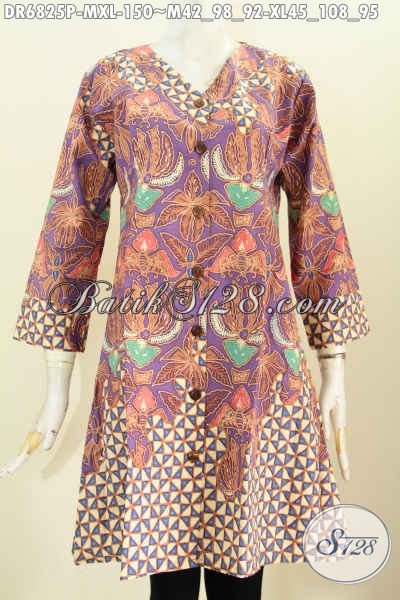 Baju Batik Wanita Unik, Dress Batik Kereh V Buatan Solo Motif Bagus Proses Printing Harga 150K [DR6825P-M , XL]