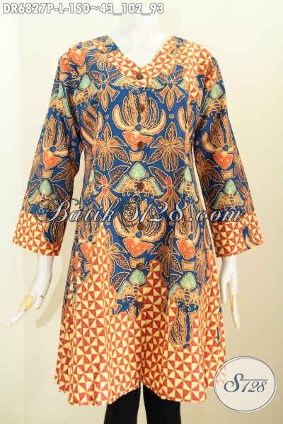 Baju Batik Wanita Untuk Kantor, Pakaian Batik Dress Halus Motif Mewah Proses Printing Kwalitas Istimewa Hanya 150 Ribu Saja [DR6827P-L]