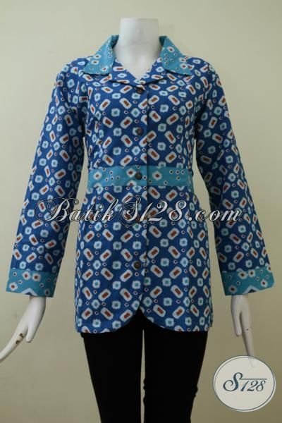 Baju Batik Warna Biru Untuk Perempuan Muda Maupun Dewasa, Blus Batik Formal Desain Mewah Trend Masa Kini Sempurnakan Penampilan Cewek Setiap Hari [BLS2151P-M]