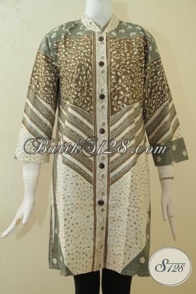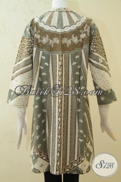Baju Batik Warna Kalem Desain Mewah, Batik Busana Kerja Wanita Dewasa Size M, Blus Batik Kombinasi Tulis Warna Alam Lebih Halus [BLS3398BTA-M]