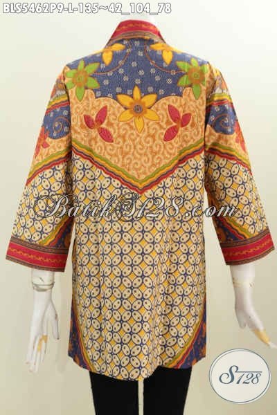 Baju Blus Bati Keren Dan Modern, Pakaian Batik Halus Proses Printing Model Tanpa Kerah Cocok Untuk Seragam Kerja Dan Rapat [BLS5462P-L]