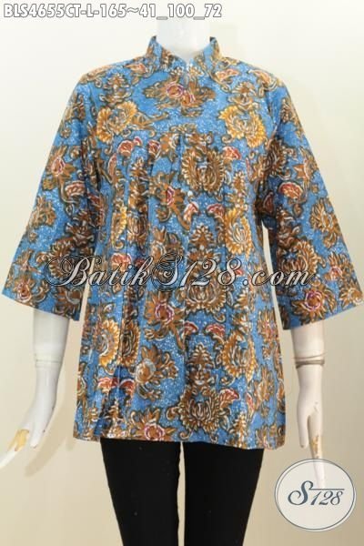 Baju Blus Batik Biru Kerah Shanghai Kwalitas Istimewa Trend Masa Kini, Produk Baju Batik Berkelas Motif Mewah Proses Cap Tulis Harga 160 Ribuan [BLS4655CT-L]