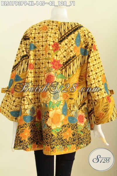 Baju Blus Batik Cutting A, Pakaian Batik Simetris Model Terkini Motif Proses Printing, Baju Batik Wanita Bekerja Tampil Gaya Dan Trendy [BLS6793P-XL]
