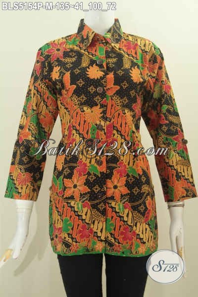 Baju Blus Batik Elegan Desain Formal, Pakaian Batik Modern Klasik Bahan Halus Motif Mewah Proses Printing Dengan Kerah Kemeja, Pas Banget Untuk Kerja Kantoran [BLS5154P-M]