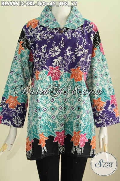Baju Blus Batik Istimewa Yang Bikin Wanita Gemuk Tampil Beda, Hadir Dengan Desain Benang Besar Motif Terkini Proses Cap Harga 160K [BLS6651C-XXL]