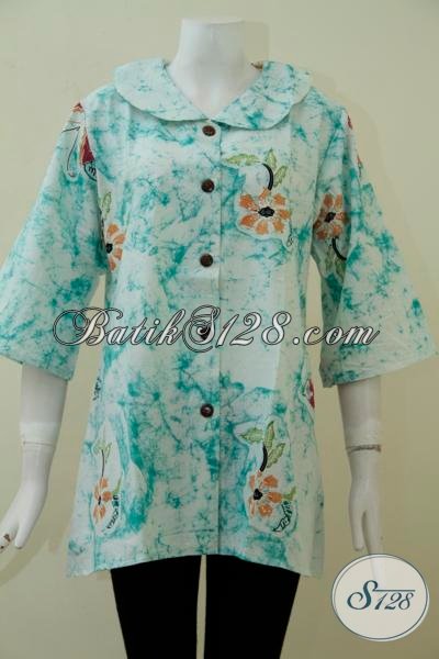 Baju Blus Batik Kerah Lebar Dengan Goresan Motif Unik Sempurnakan Penampilan Wanita Karir Setiap Hari [BLS1899BT-XL]