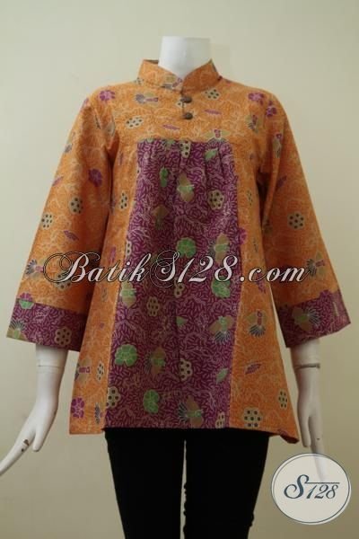 Baju Blus Batik Kombinasi Warna Merah Dan Kuning Trendy Dan Keren, Pakaian Batik Seragam Kerja Wanita Berkarir Tampil Lebih Mewah [BLS2142P-M]