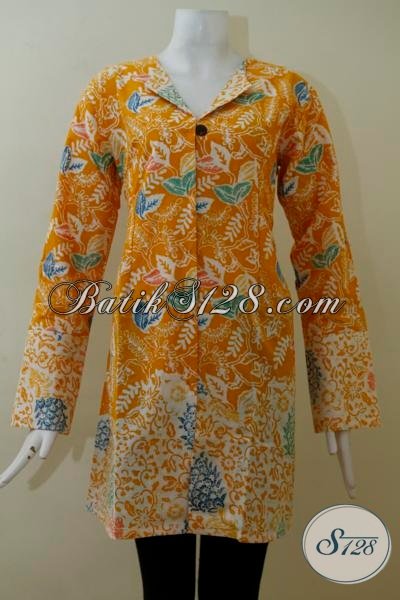 Baju Blus Batik Lengan Panjang Koleksi Terbaru Toko Batik Solo Online, Busana Batik Kuning Motif Keren Modis Serta Fashionable [BLS2043C-L]
