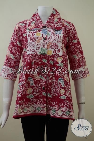Baju Blus Batik Merah Kombinasi Putih Dengan Motif Keren Trend Masa Kini, Pakaian Batik Wanita Desain Mewah Nan Elegan Untuk Tampil Lebih Berkelas [BLS2111C-M]