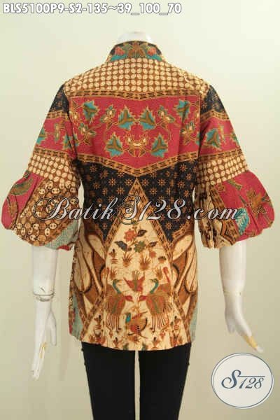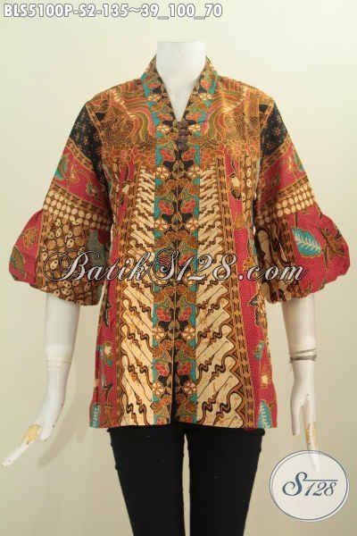 Baju Blus Batik Motif Klasik Dengan Desain Modern Kerah Kartini Proses Printing, Busana Batik Elegan Dengan Kancing Sampai Bawah Tangan Balon Tampil Makin Modis [BLS5100P-S]