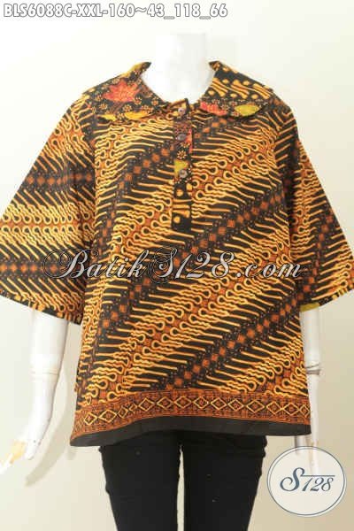Baju Blus Batik Motif Klasik Istimewa, Busana Batik Jumbo Elegan Proses Cap Bahan Halus Kwalitas Istimewa Untuk Wanita Gemuk Penampilan Makin Berkelas [BLS6088C-XXL]