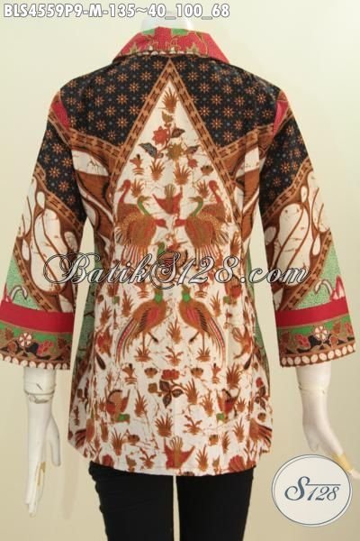 Baju Blus Batik Motif Sinaran Proses Printing, Pakaian Batik Klasik Elegan Model Kerah Kotak Trend Terkini Wanita Tampil Lebih Anggun [BLS4559P-M]