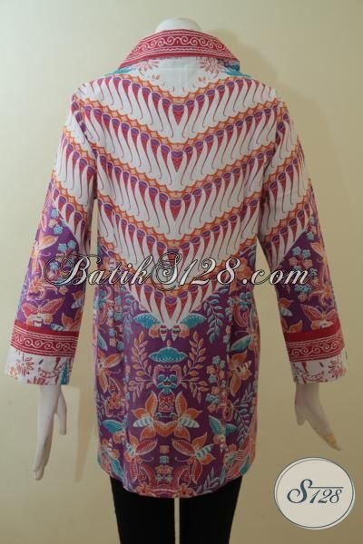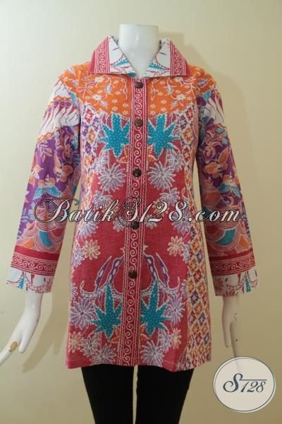 Baju Blus Batik Motif Unik Dengan Kombinasi Warna Cerah Yang Berkelas, Pakaian Batik Print Seragam Kerja Kantoran Wanita Muda Tampil Beda [BLS3058P-L]
