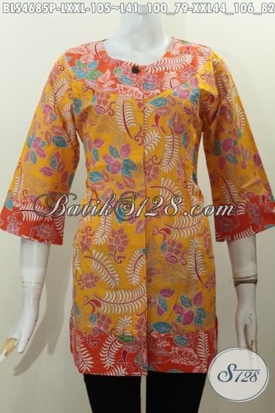Baju Blus Batik Murmer Desain Keren Kombinasi Dua Warna Berbahan Halus Trend Mode Terkini, Batik Print Jawa Tengah Untuk Penampilan Yang Lebih Baik [BLS4685P-L , XXL]