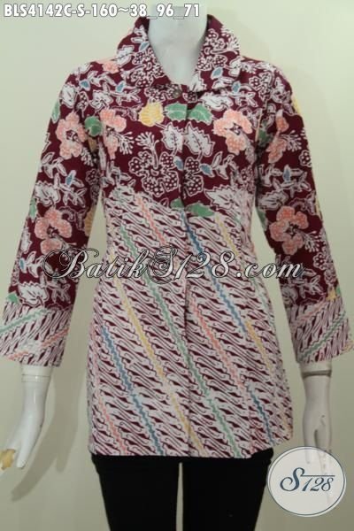 Baju Blus Batik Parang Bunga Dual Warna, Pakaian Batik Modis Dan Istimewa Buatan Solo Proses Cap Cocok Banget Untuk Kerja [BLS4142C-S]