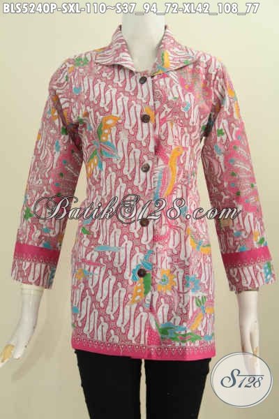 Baju Blus Batik Printing Kerah Kotak Warna Merah Jambu Motif Kombinasi Klasik Dan Modern Yang Bikin Penampilan Lebih Feminim Dan Gaya [BLS5240P-S , XL]